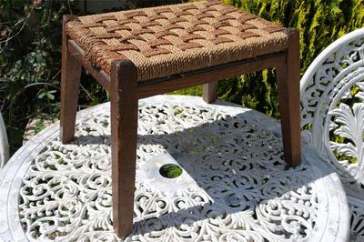 Title (ebay affiliate link): Vintage Solid Oak Foot Stool 30s Splayed Legs Rope Top Arts & Crafts Rustic Chic