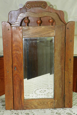 Title (ebay affiliate link): ANTIQUE OAK HANGING MEDICINE CABINET BEVELED MIRROR PRIMITIVE