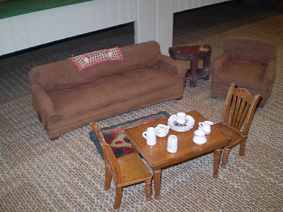 LOT ANTIQUE DOLL FURNITURE SOFA CHAIR TABLE +++++++