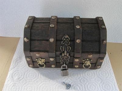 Title (ebay affiliate link): VINTAGE WOODEN GOTHIC TREASURE CHEST BOX WITH PADLOCK & SMALL KEY