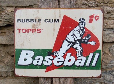 Title (ebay affiliate link): Antique Look Topps Baseball Cards & Bubble Gum Metal Sign Retro Wall Decor USA