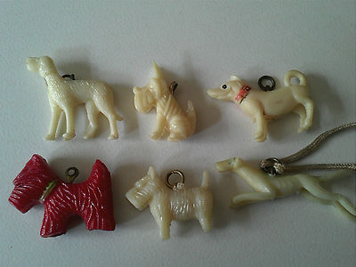 6. VINTAGE CELLULOID CRACKER JACK CHARMS DOGS GUMBALL JAPAN TOY PRIZES 1940s