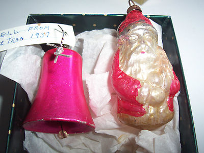antique Germany 1930s mercury glass Christmas ornaments Santa & Bell