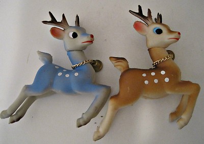 Title (ebay affiliate link): 2 VINTAGE REINDER RUDOLPH CHRISTMAS ORNAMENTS JAPAN