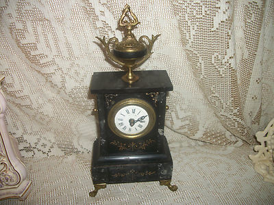 ANTIQUE AUSTRIAN A.V. DEPOSE BREVETE BLACK MARBLE CLOCK AMPHORA AUSTRIA MARK