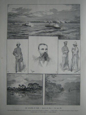 PRINT ENGRAVING 1893 EVENTS SIAM THAILAND
