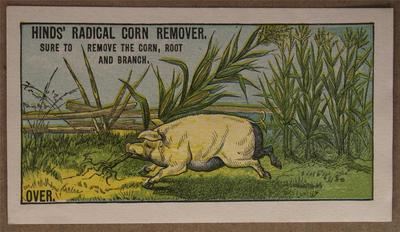 Title (ebay affiliate link): HIND'S CORN REMOVER~PIG~CORN STALK~MEDICAL QUACKERY~1880s VICTORIAN Trade Card