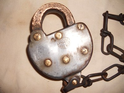 Title (ebay affiliate link): Antique "E.T. Fraim" Padlock, Lancaster, PA, USA with original chain attached