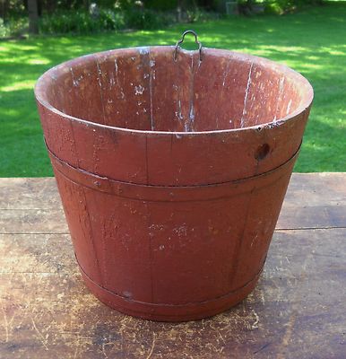 Title (ebay affiliate link): Primitive Old Wood Maple Syrup Firkin Bucket Pail Box Old Red Paint