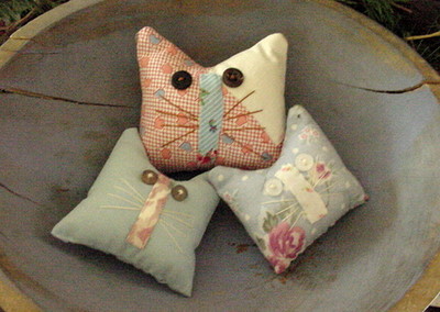 Title (ebay affiliate link): Primitive Kitty Cat Bowl Fillers Drawer Dwellers Ornies Patchwork and Pastels