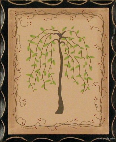 Primitive Country WOOD STANDING WILLOW TREE BLOCK sign Antique Rustic home decor