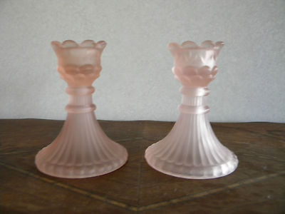 Beautiful Delicate Pair of Pink Depression Glass Candlesticks Amazing Condition!