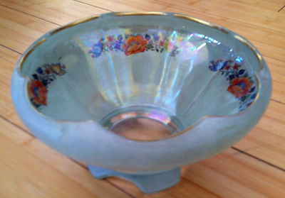 Vtge Frosted Green Depression Glass Reverse Painted Dish w/Floral Design. PRETTY