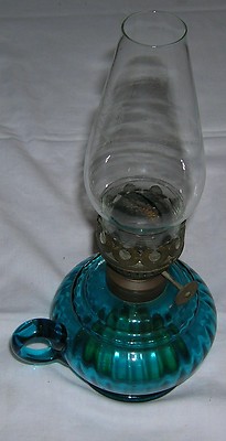 Title (ebay affiliate link): Antique vintage Blue oil paraffin lamp hand held portable glass
