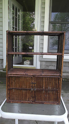 Title (ebay affiliate link): Vintage Wicker Wood Rattan Bamboo Wall Hanging Cabinet Shelf