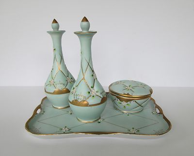 Title (ebay affiliate link): HAND PAINTED LENWILE CHINA ARDALT JAPAN Vanity Tray Perfume Bottle Powder Set
