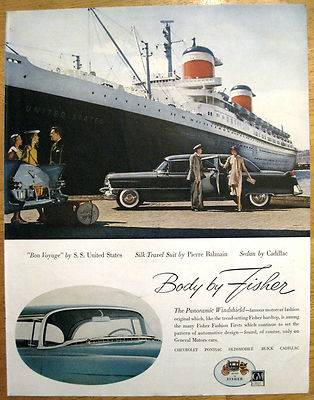 Title (ebay affiliate link): 1955 Cadillac 75 4-door limousine in a Fisher Bodycolor magazine ad