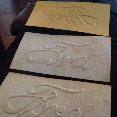 Three ( 3 ) Solid Polished Brass Stamped Vintage Ford Sign / Plaque
