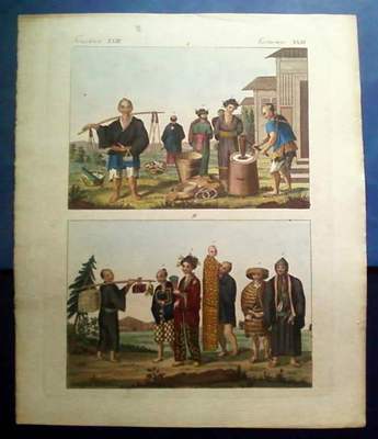 c1800 ANTIQUE HANDCOLORED ENGRAVING JAPAN TRADITION JAPANESE COSTUMES BERTUCH