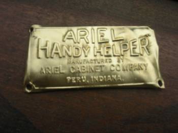 Original Hoosier Style ARIEL Cabinet Brass Tag