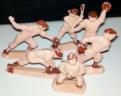 Title (ebay affiliate link): SET OF 6 VINTAGE AJAX PLASTIC BASEBALL PLAYER FIGURINES RARE PIECES