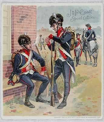 J&P COATS SPOOL COTTON THREAD TRADE CARD US ARMY UNIFORMS 1802-1810