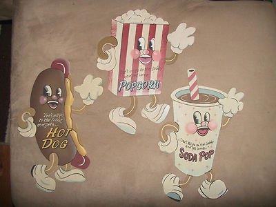 Title (ebay affiliate link): Large Walking Popcorn, Hot Dog, Soda Metal Sign, Snack Bar Concessions Retro