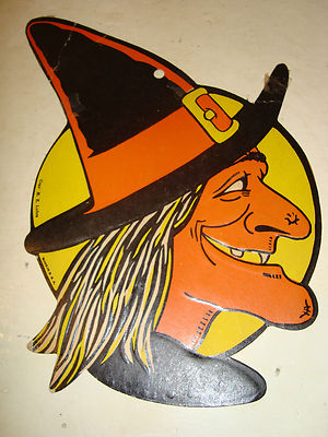 Title (ebay affiliate link): Vintage 1940s HALLOWEEN Decoration Embossed Cardboard WITCH by H E LUHRS
