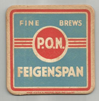 1940 Feigenspan P.O.N. Coaster Newark, NJ 4" Fine Brews