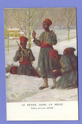 Title (ebay affiliate link): Vintage WW One French Post Card-Black soldiers in Snow