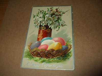 Title (ebay affiliate link): EASTER POSTCARD- BASKET OF COLORFUL EGGS- TUCKS- 1911