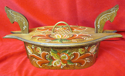 Title (ebay affiliate link): VTG NORWEGIAN SCANDINAVIAN FOLK ART SIGNED ROSEMALING OVAL BENTWOOD TINE BOX