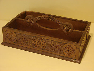 Title (ebay affiliate link): Antique Silverware / Cutlery Tray Pennsylvania Folk Art Carved Wood Estate Find