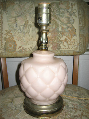 Antique Pink Quilted Satin Glass Table Lamp Vintage