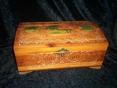 Beautiful Vintage Dove Tail Cedar Box with Mirror and Carving