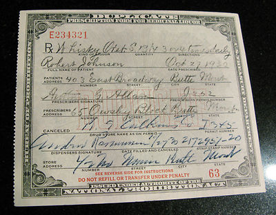 Title (ebay affiliate link): Old 10/27/30 PROHIBITION Medical WHISKEY PRESCRIPTION Bar Pharmacy Butte, MT
