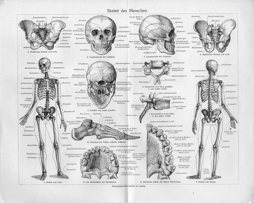 Title (ebay affiliate link): 1894 HUMAN SKELETON SKULL BONES TEETH Antique Engraving Print