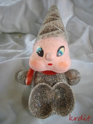 Title (ebay affiliate link): Vintage Paper Mache Mica Gnome Elf Candy Container Christmas Ornament VG