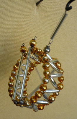 VTG.GLASS BEADED DRUM CHRISTMAS TREE ORNAMENT