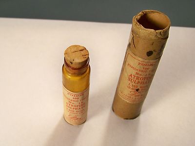 Title (ebay affiliate link): Near Mint Eli Lilly & Co Atropine Amber Poison Medicine Bottle W Outer Carton
