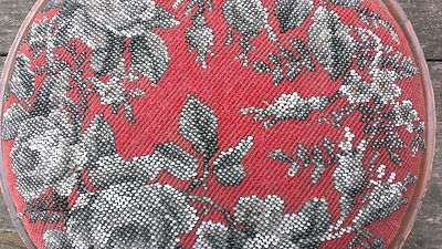 Title (ebay affiliate link): Antique Victorian Beaded Foot Stool Classic Berlin Woolwork Roses Inlaid Wood