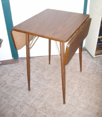 Title (ebay affiliate link): Mid Century Modern Drop Leaf Dinette Table Walnut Formica Apartment Size Hairpin