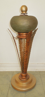 Title (ebay affiliate link): antique vintage ART NOUVEAU TABLE BASE green brass leaves deco amazing as is