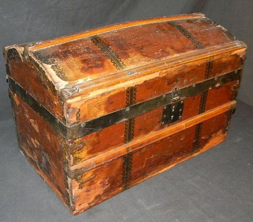 Title (ebay affiliate link): Great Antique Hump Back Childs Doll Trunk w Tray Shelf & Pictures 1870's