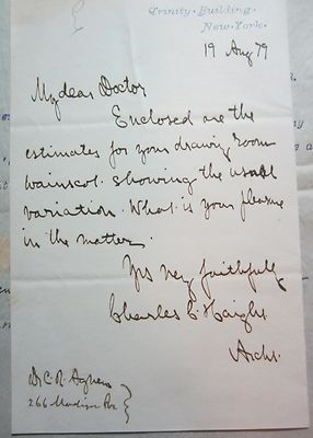 Title (ebay affiliate link): Handwritten Letter 1879 Architect Charles Haight Drawing Room