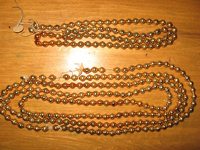 Title (ebay affiliate link): VINTAGE ANTIQUE MERCURY GLASS CHRISTMAS BEAD GARLAND FEATHER TREE GOLD 29" 73"