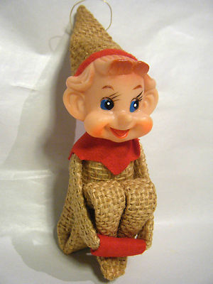Title (ebay affiliate link): VTG Christmas Elf Knee Hugger Ornament Japan Pixie Shelf Sitter 1960's
