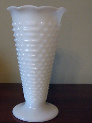Title (ebay affiliate link): VINTAGE ANCHOR HOCKING HOBNAIL&BAR PATTERN MILK WHITE TRUMPET SCALLOPED VASE!!