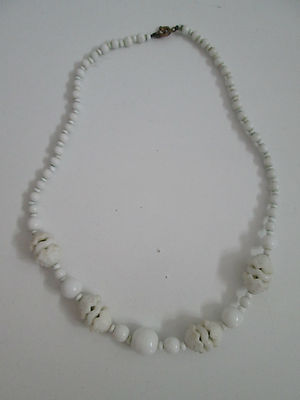 Vintage Art Deco Milk White Glass Beads Moulded Bead Beaded Necklace Choker