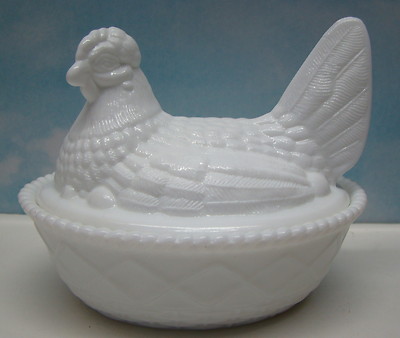 Westmoreland mkd Hen on Nest Milk White Glass #F72